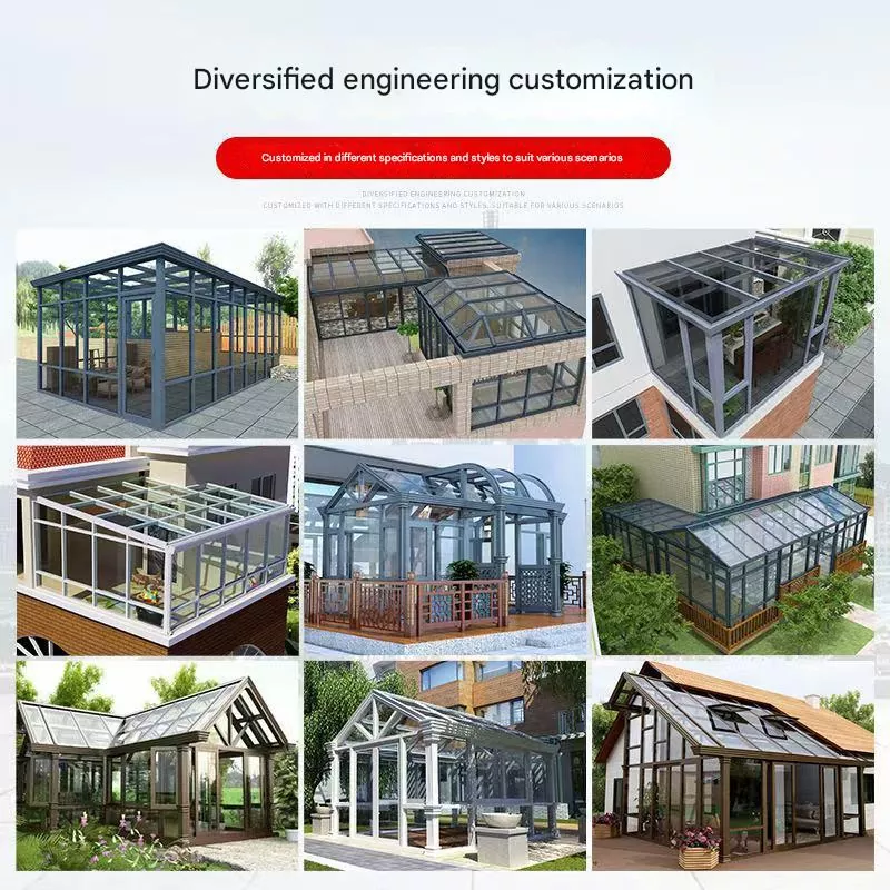 Vi gir one-stop solromtilpasning og innkjøpstjenester, som dekker strukturdesign, størrelse, rammefarge, glassspesifikasjoner og tilbehør. Prosjektbaserte løsninger inkluderer gratis nettstedsmåling og visuelle forhåndsvisninger.