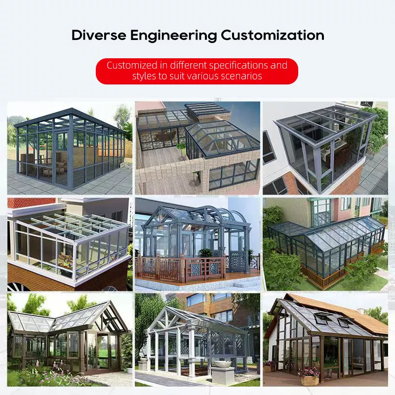 Våre solrom i aluminiumslegering med termisk brudd eksporteres mye til Europa og Nord-Amerika og er anerkjent for sine energieffektivitet, strukturell stabilitet og moderne utseende. Vi ser frem til å bygge en langsiktig partnerskap og bli din pålitelige leverandør i Kina.